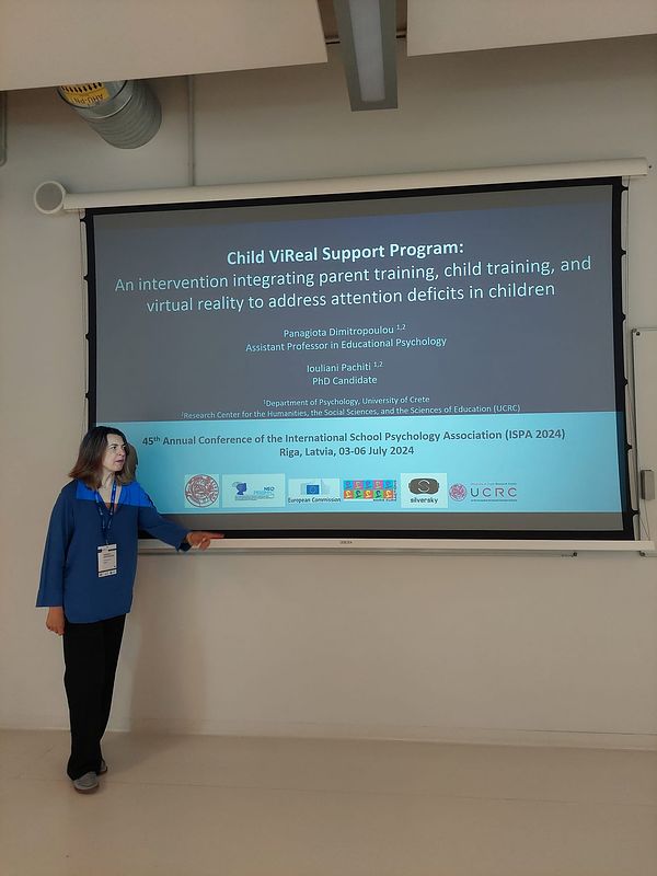 In this presentation, we had the opportunity to present the design of the multimodal intervention program named 'Child ViReal Support Program' that was developed as part of my doctoral studies for children with attention deficits and their parents. According to the results from the randomized controlled trial (RCT) study that was implemented to assess its efficacy, following their participation in the intervention program, parents reported reduced parenting stress, enhanced parental self-efficacy, and increased use of democratic parenting practices, while children demonstrated decreased levels of inattention and impulsivity/hyperactivity, enhanced performance in cognitive tasks, and reduced behavioral problems. .